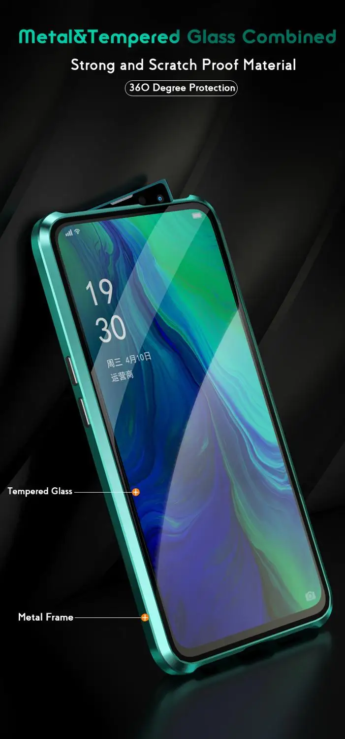 | Double-sided Glass Magnetic Case for OPPO Reno 10X ZOOM Z 2 ACE F11 A9 K3 Realme 3 5 X X2 XT Q R17 Pro A11X A5 A9 2020 F9 A7X |