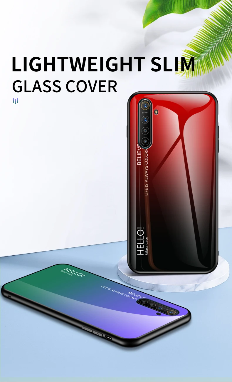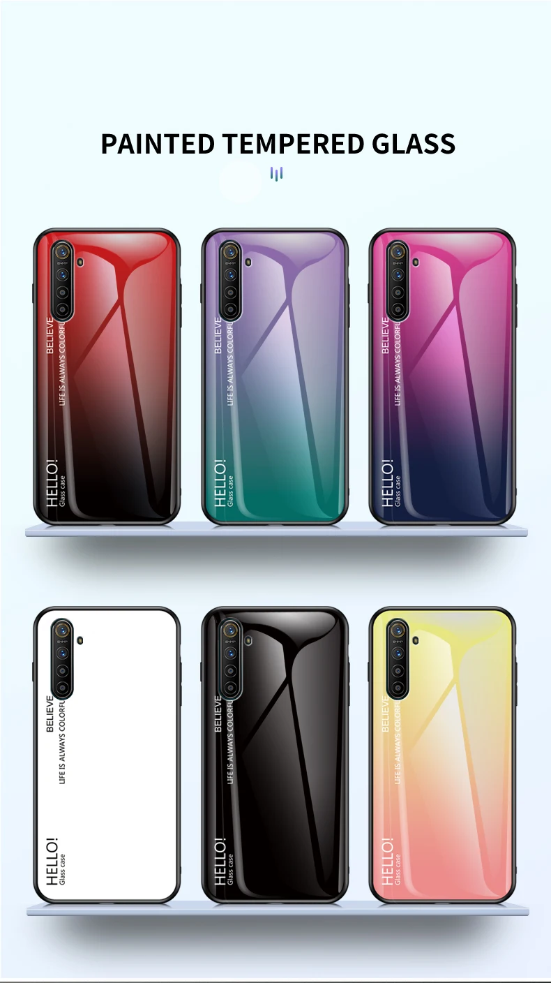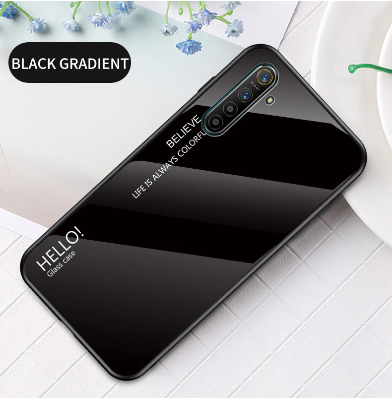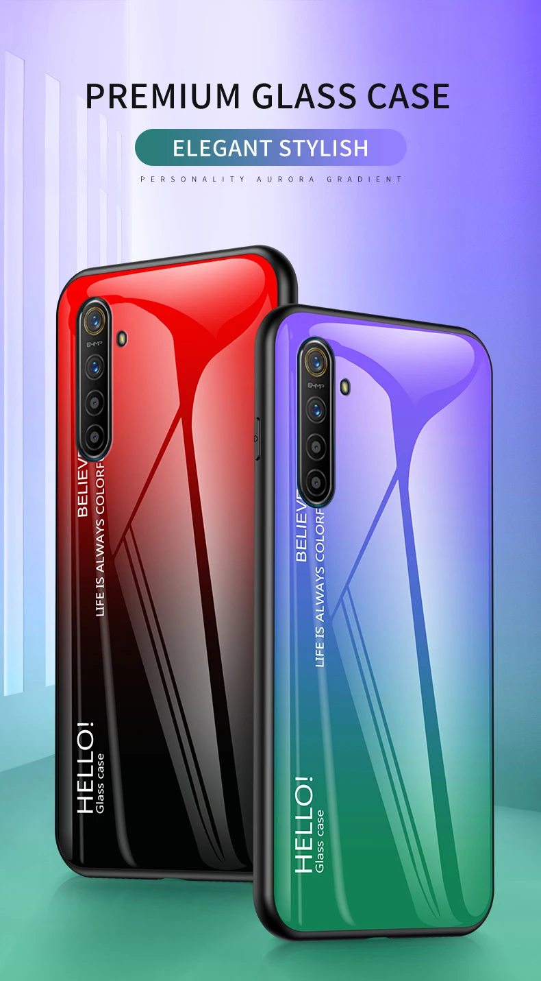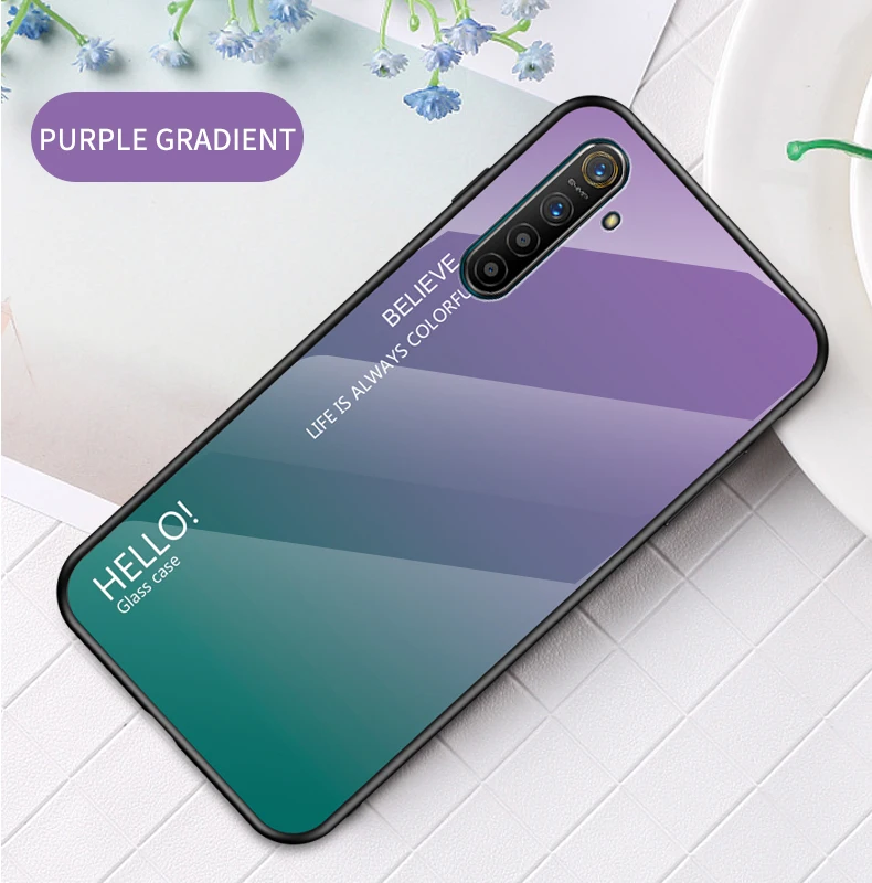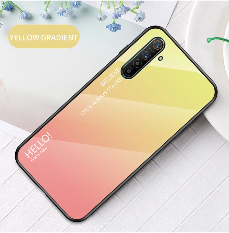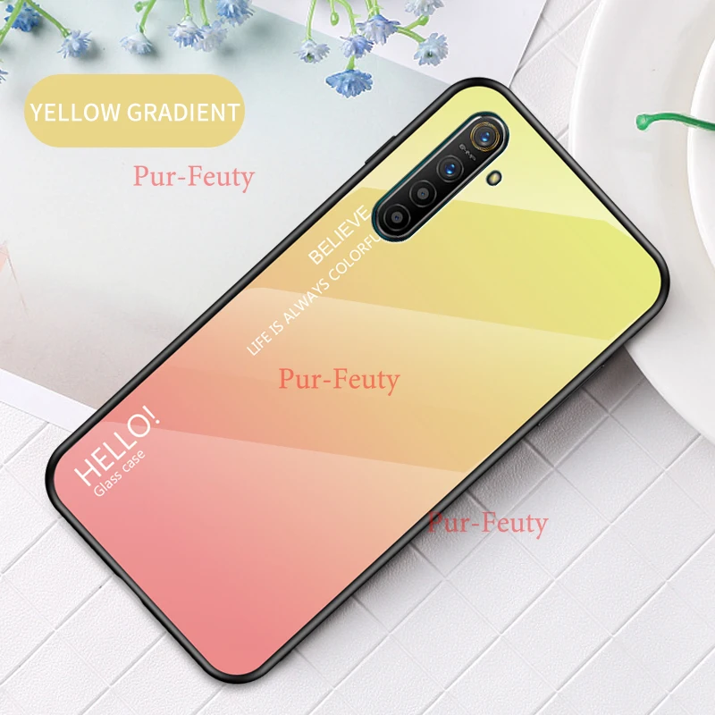 Best Price Comparison With For OPPO Realme XT X2 1 2 3 5 Pro C2 Case Tempered Glass Gradient back Cover For oppo reno 10X Zoom 2Z ACE A5 A9 2020 F11 case