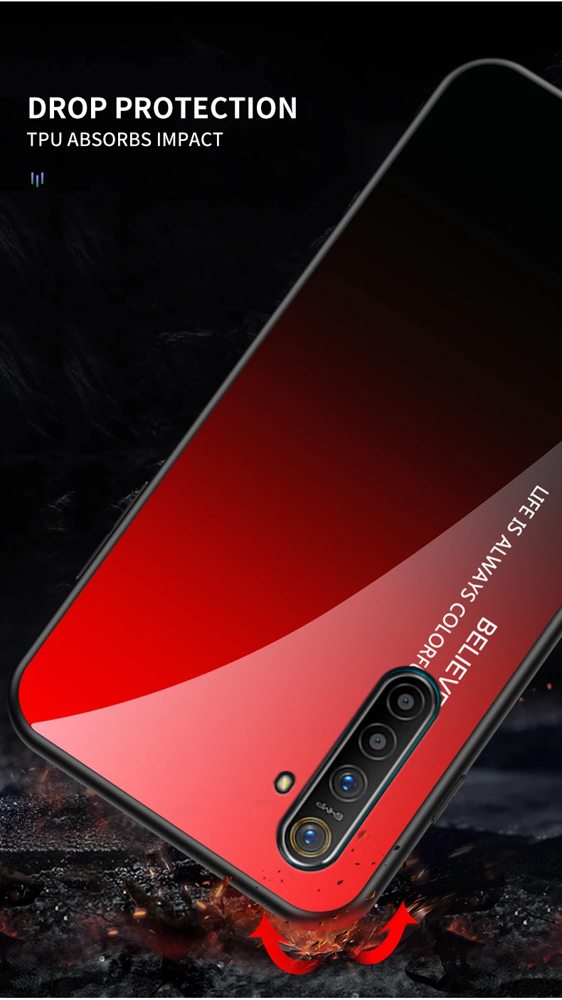 | For OPPO Realme XT X2 1 2 3 5 Pro C2 Case Tempered Glass Gradient back Cover For oppo reno 10X Zoom 2Z ACE A5 A9 2020 F11 case |