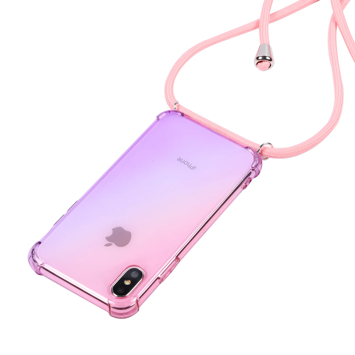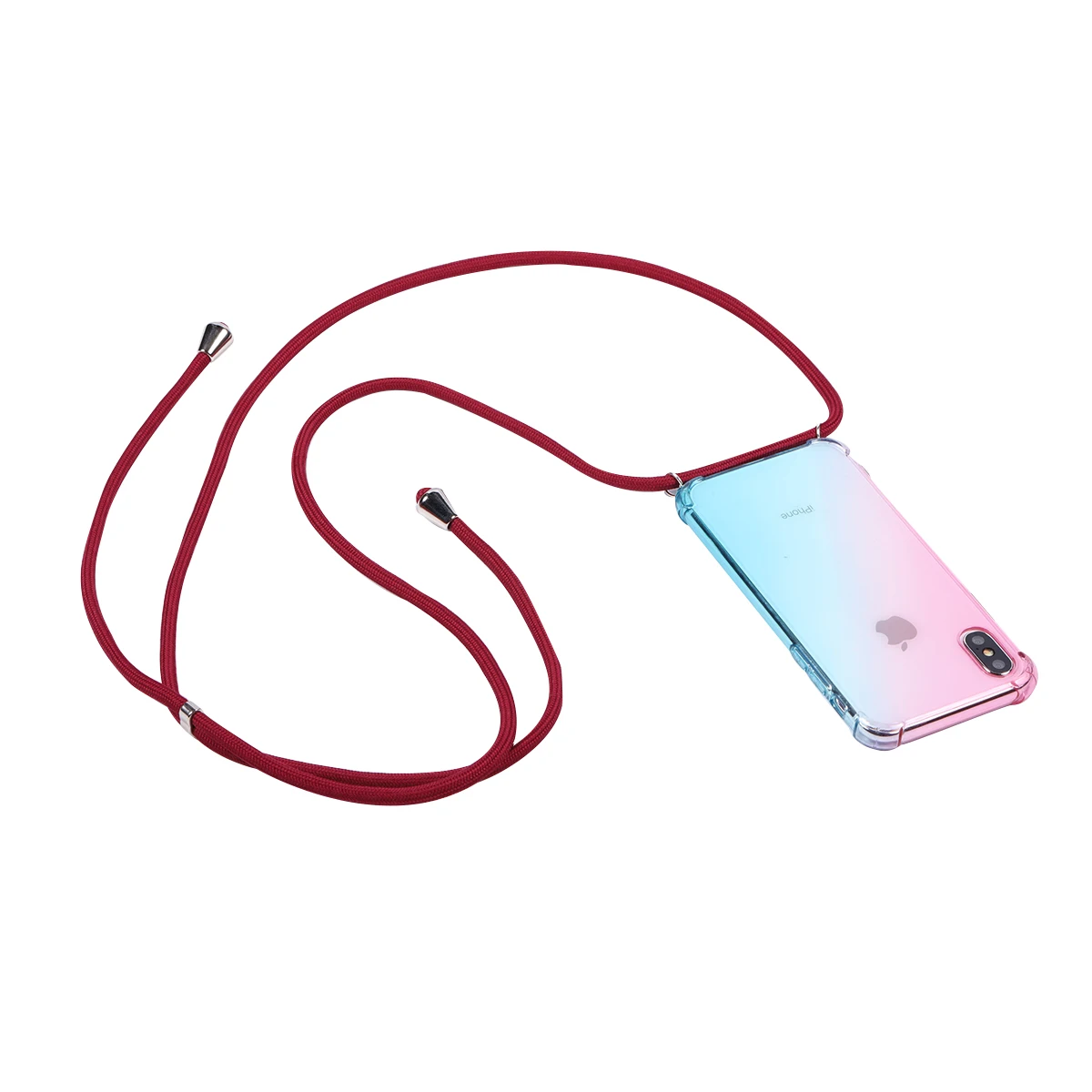 Lanyard rainbow aurora transparent case for Xiaomi redmi 7A 8A note 8 7 pro 8T 6 5 k20 K30 GO lanyard shoulder rope cord Airbag