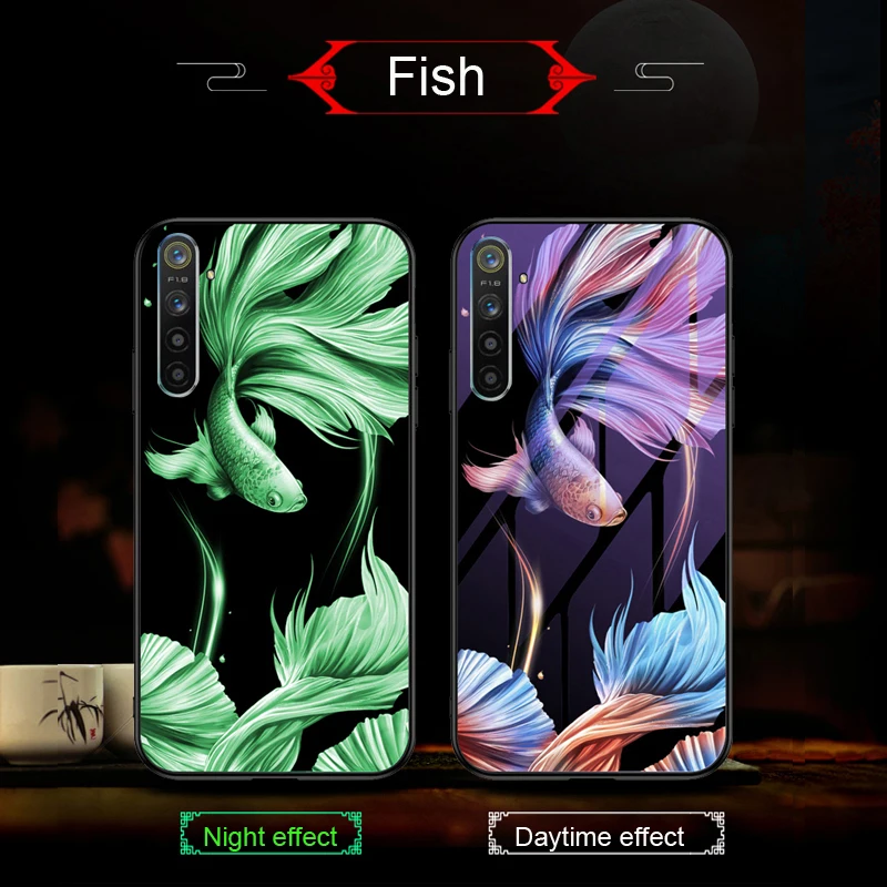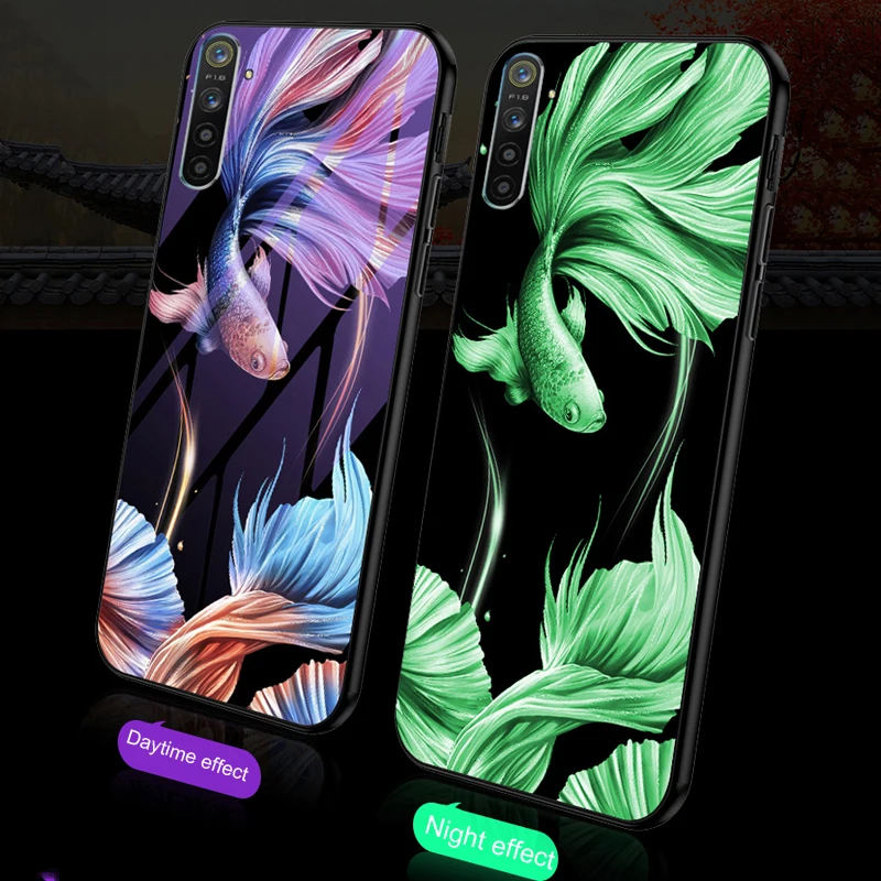 | Luminous Case for Oppo Realme X2 Pro XT Realme 3 Realme 5 Pro Q A5 A9 2020 Reno 2F 2Z Ace Tempered Glass Shell Funda Case Cover |