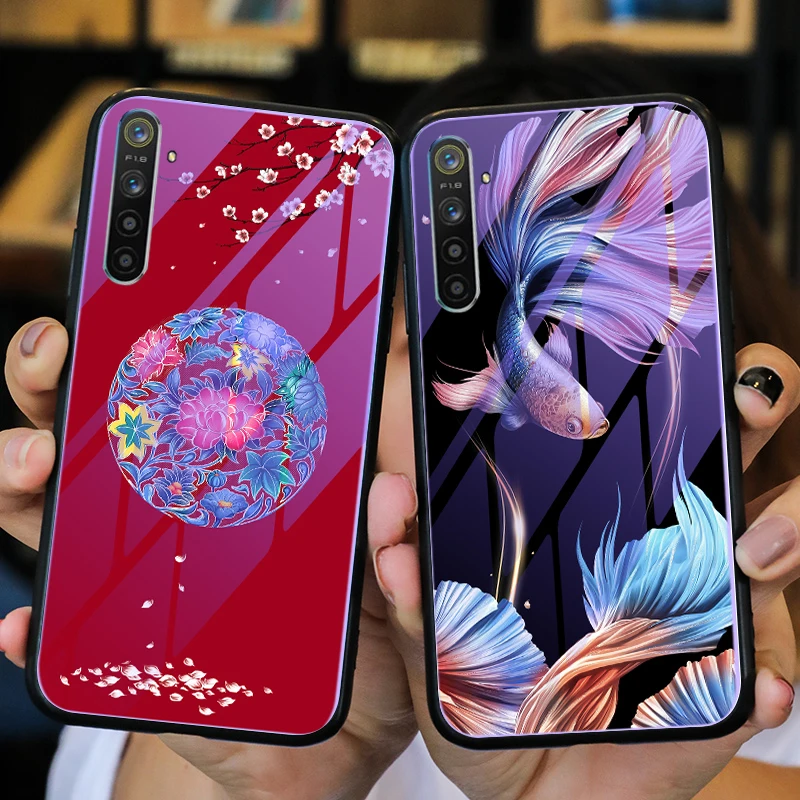 Blue-ray Tempered Glass Case for Oppo Realme X2 Pro X 2 XT Reno 2Z 2F F11 Realme 5 Pro A9 A5 2020 Flower Shell Back Cover Case