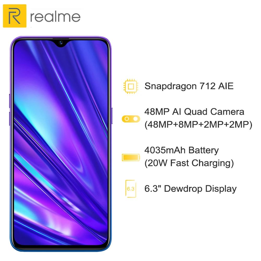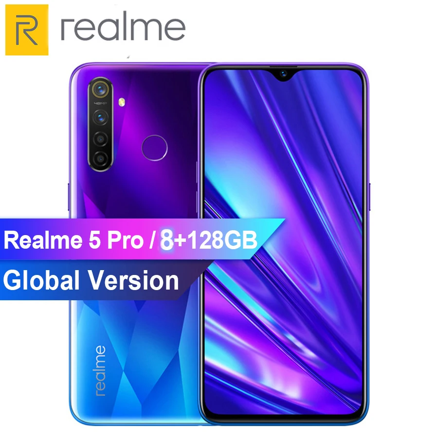 Global Version realme 5 Pro 4GB RAM 128GB Mobile Phone Snapdragon 712AIE 48MP Quad Camera Smartphone 4035mAh Fast Charger
