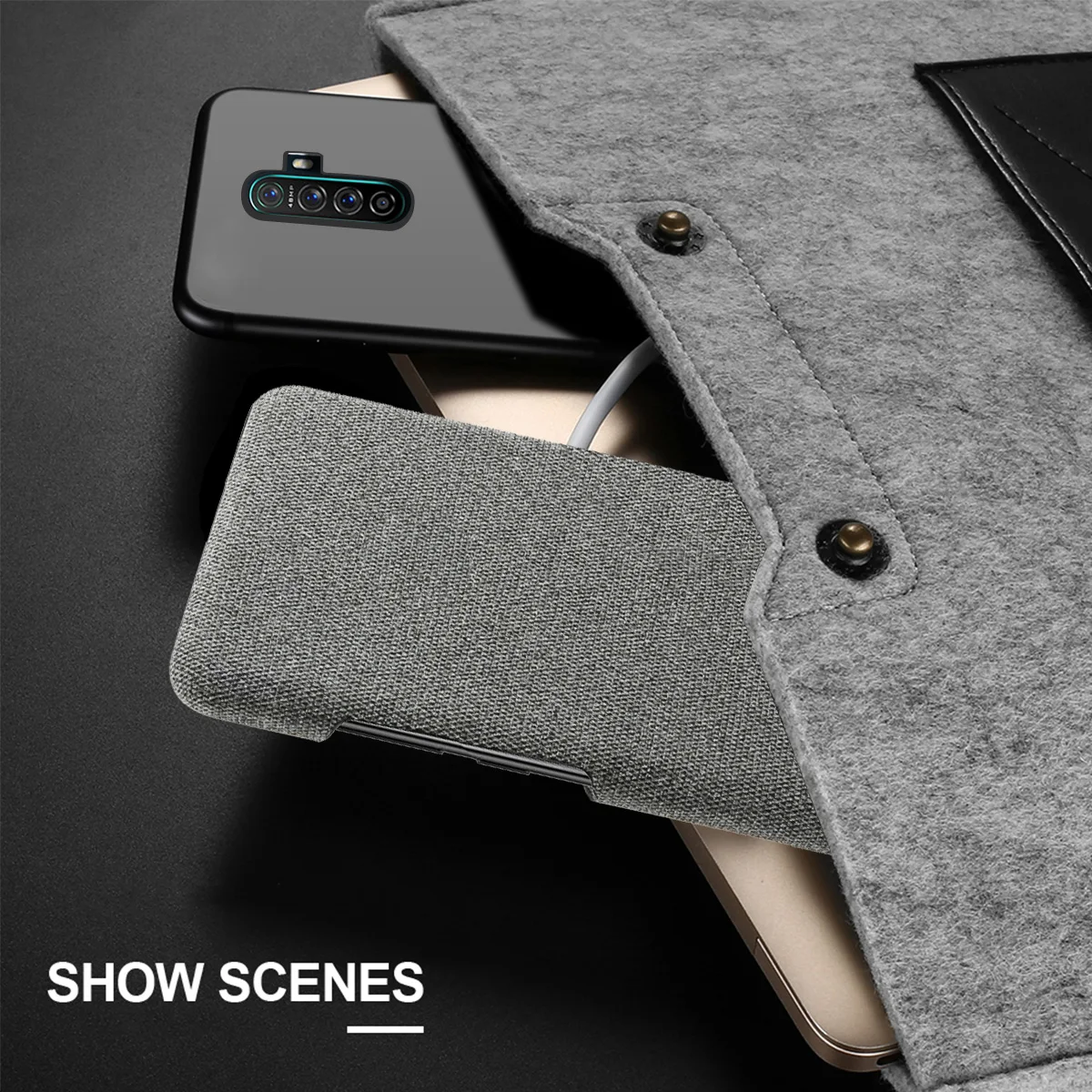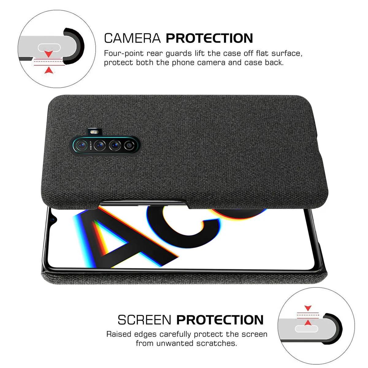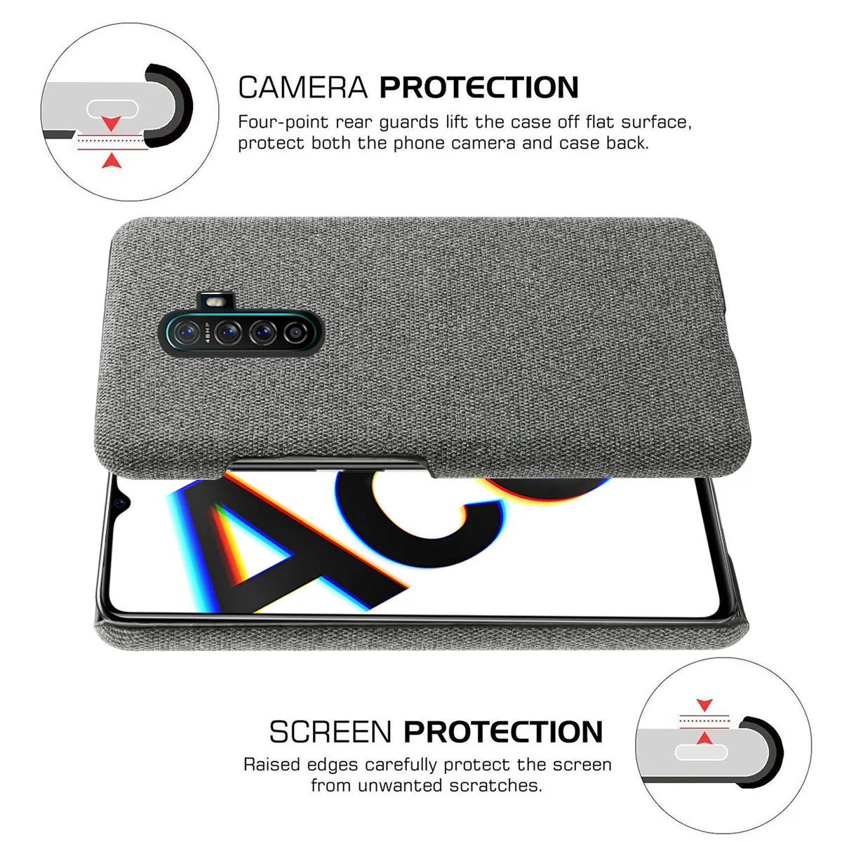 | For Oppo Realme X2 Pro Reno Ace Case Cloth Back Hard PC Fundas Shockproof Cover Oppo Reno 2 A9 2020 Realme XT Case Slim Fabric |
