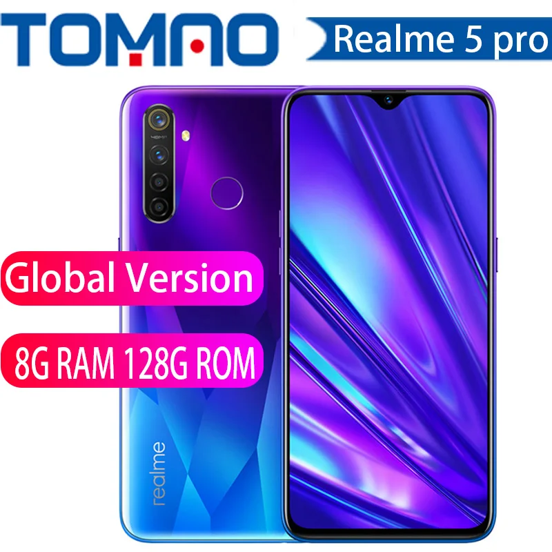 Global Version realme 5 Pro 4GB RAM 128GB Mobile Phone Snapdragon 712AIE 48MP Quad Camera Smartphone 4035mAh Fast Charger