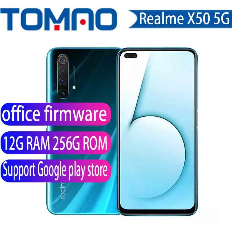 | realme X50 5G Mobile Phone nfc 6.57'' Moblie Phone Snapdragon 765G 64MP Quad Camera Cellphone OPPO VOOC 30W Fast Charger |