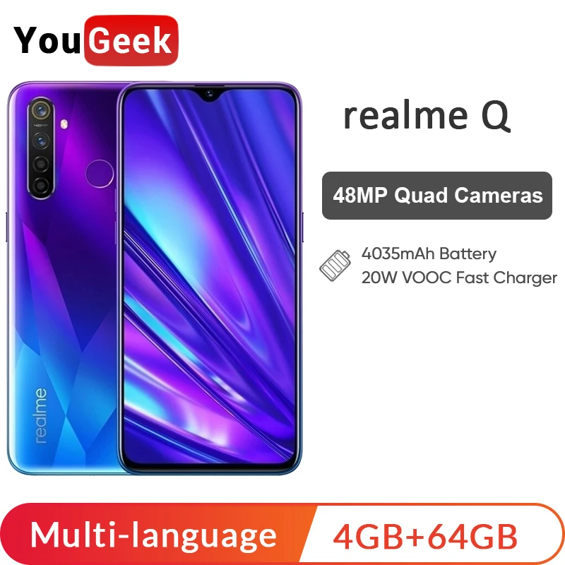 | realme Q 4GB RAM 64GB ROM Cellphone 6.3'' Snapdragon 712AIE Octa Core 48MP Quad Camera VOOC 20W Fast Charger |