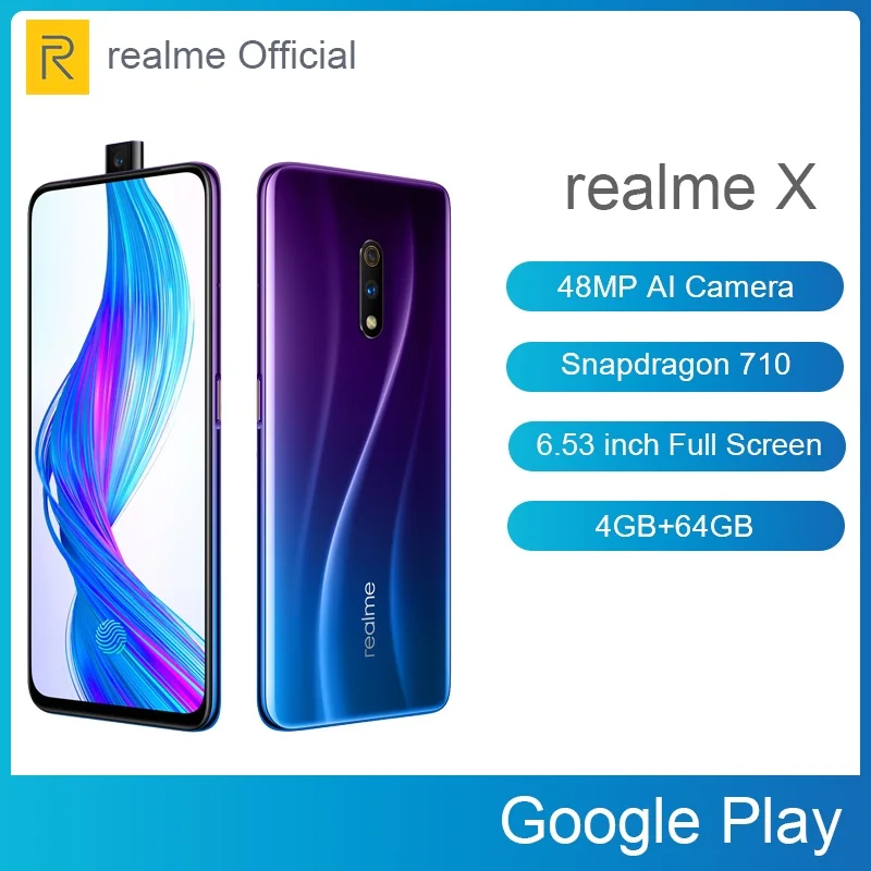 Original realme X 64G / 128G Snapdragon 710 Moblie Phone 6.53'' Full Screen Pop-up Front Cam Cellphone 20W VOOC Fast Charge 3.0