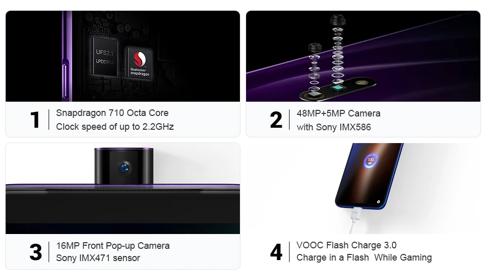 3765mAh(TYP) Battery ;20W VOOC FLASH Charge 3.0 Charge in a Flash While Gaming