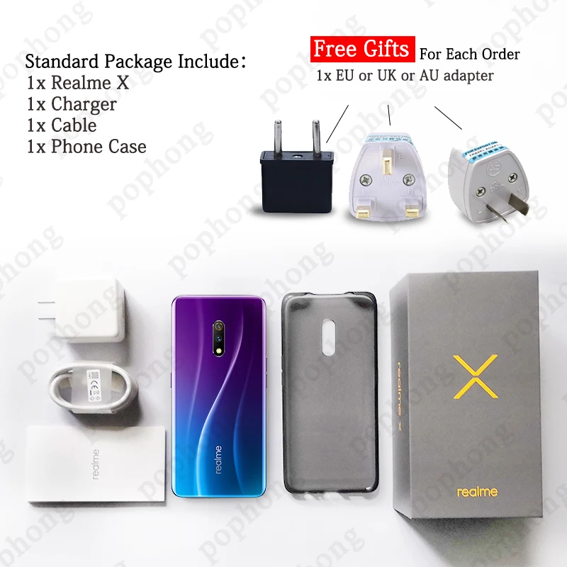 Newmodel Realme X 4G LTE Sim Free Phone Snapdragon 710 Android 9.0 6.53" 2340X1080 8GB RAM 256GB ROM 48.0MP Fingerprint