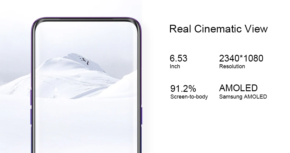 6.53" AMOLED screen on your realme X , with 91.2% screen-to-body ratio for an all immersive experience while watching movies, browsing or playing games
