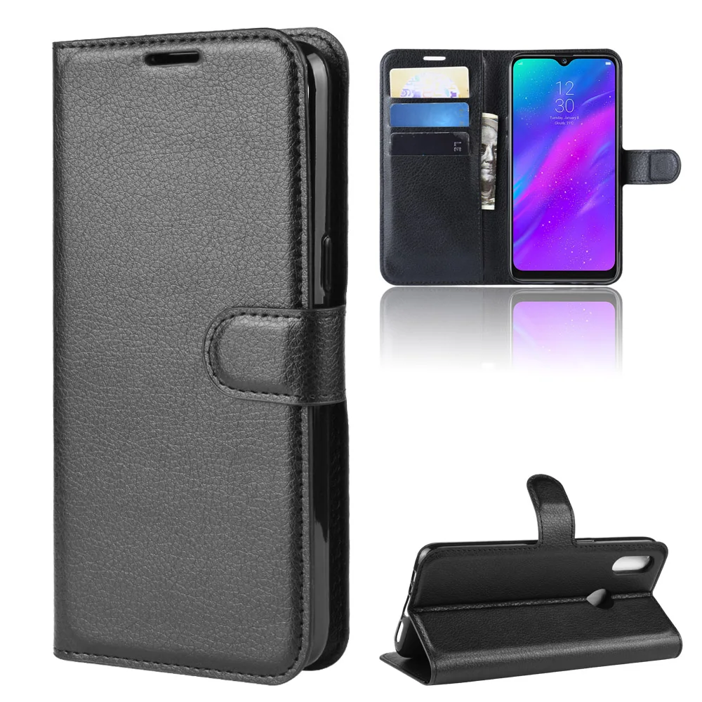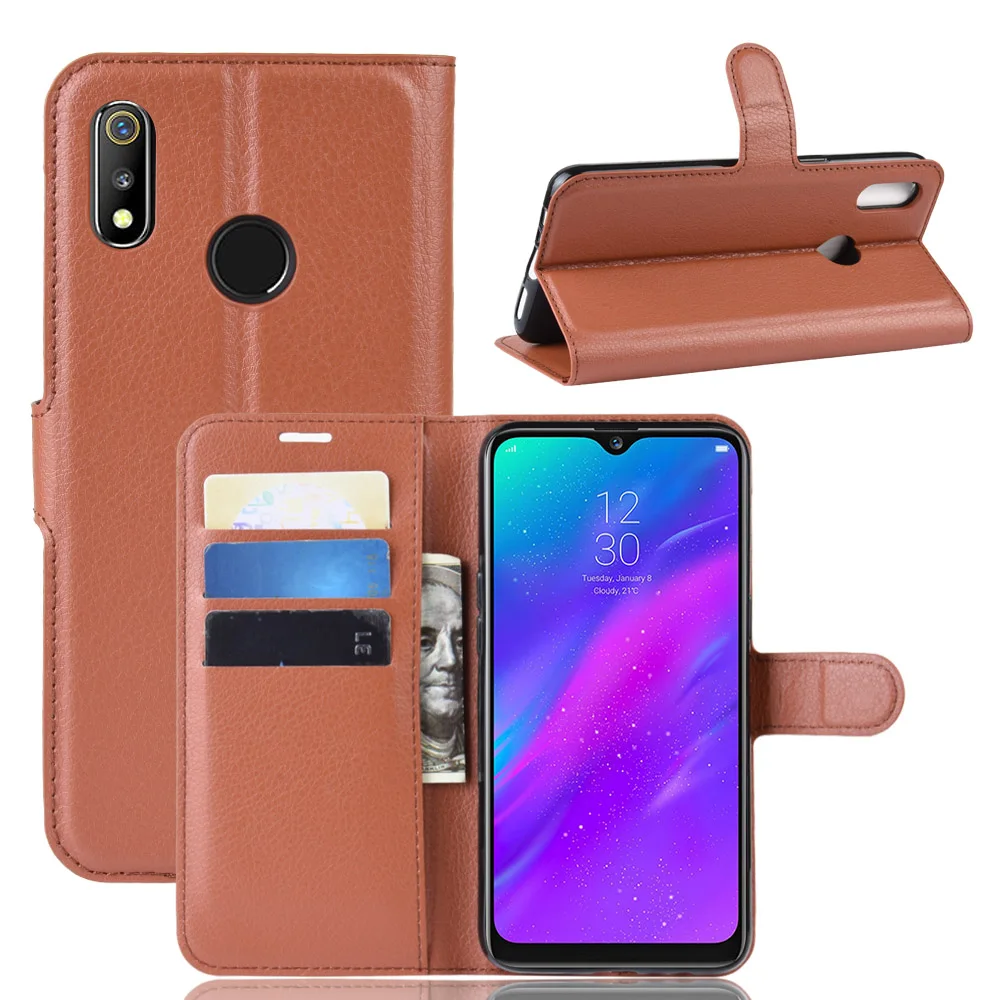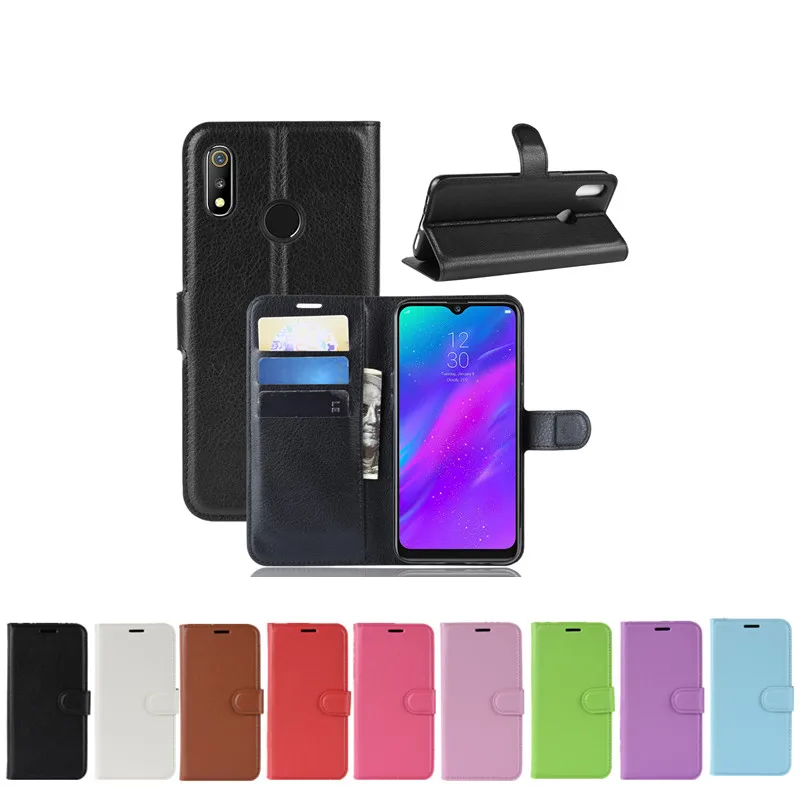 | 10pcs/lot PU leather Flip Wallet Litchi Pattern Phone Case For OPPO Realme 3 Lychee Grain Cover |