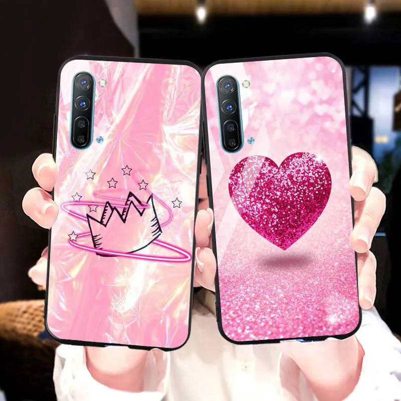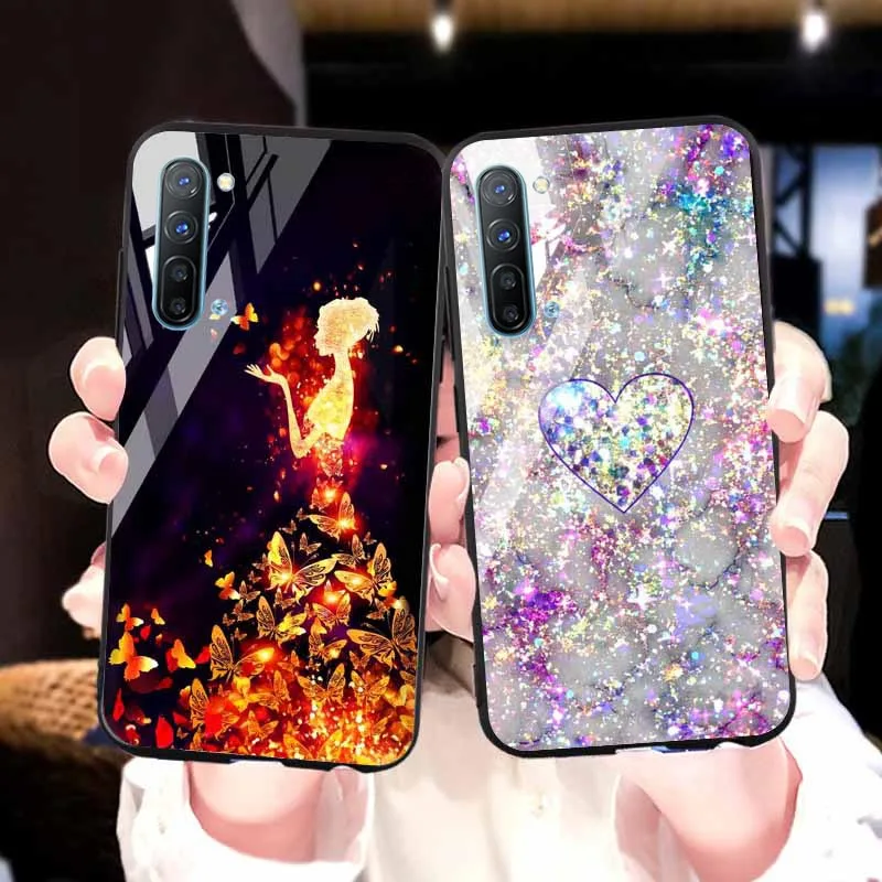 | DIY Painted Glass Case For OPPO Reno Ace Case Tempered Glass Phone Cover For OPPO Reno 3 10X Realme C2 X Lite A1k Covers |