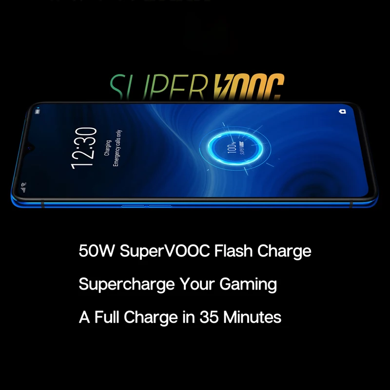 | Display | 6.5 inch, 90Hz Dewdrop Full Screen Super AMOLED Screen, Corning Glass 5, 402ppi | Battery | 2*(1950mAh min, 2000mAh typ), Equivalent 4000mAh 50W SuperVOOC Flash Charge |