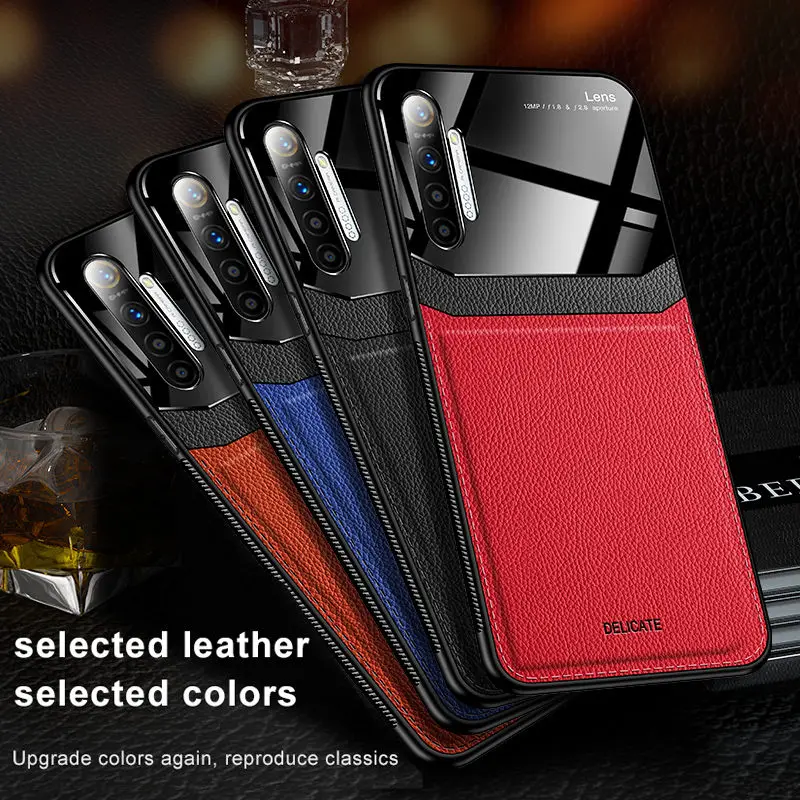| 10PCS/LOT Back Phone Case For OPPO Reno 2 A9 F11 A9X K3 K5 Realme X XT A3 A5 Organic PC Grained Skin Pattern Leather Cover Coque |